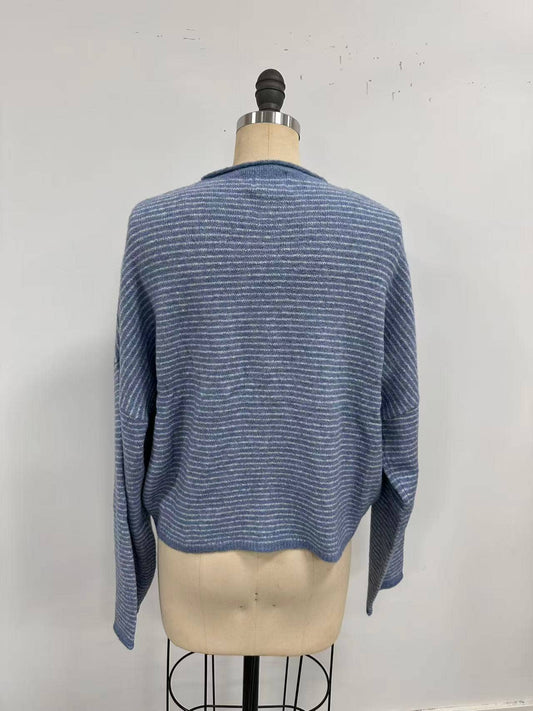 Piper Cardigan - Dusty Blue Pin Striped