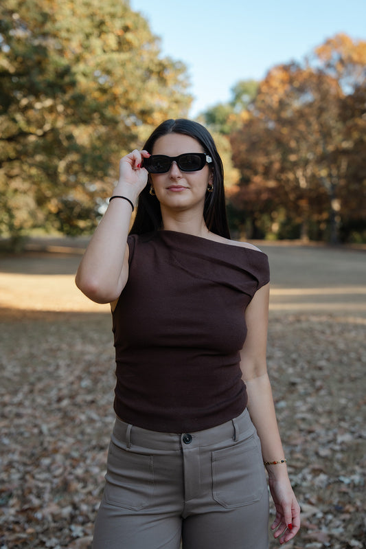 The Offset Sweater Top - Brown