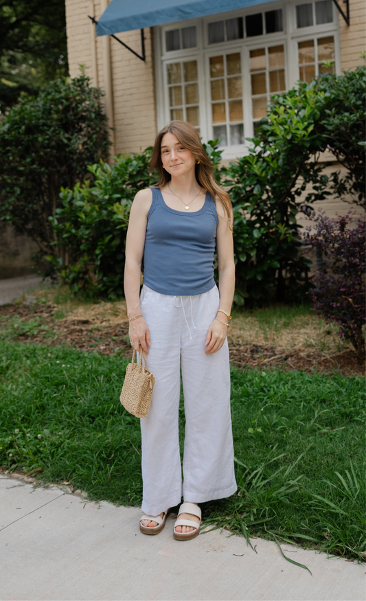 Remi Basic Ribbed Tank - Dusty Blue