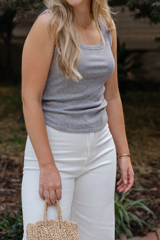 Remi Basic Ribbed Tank - Heather Grey