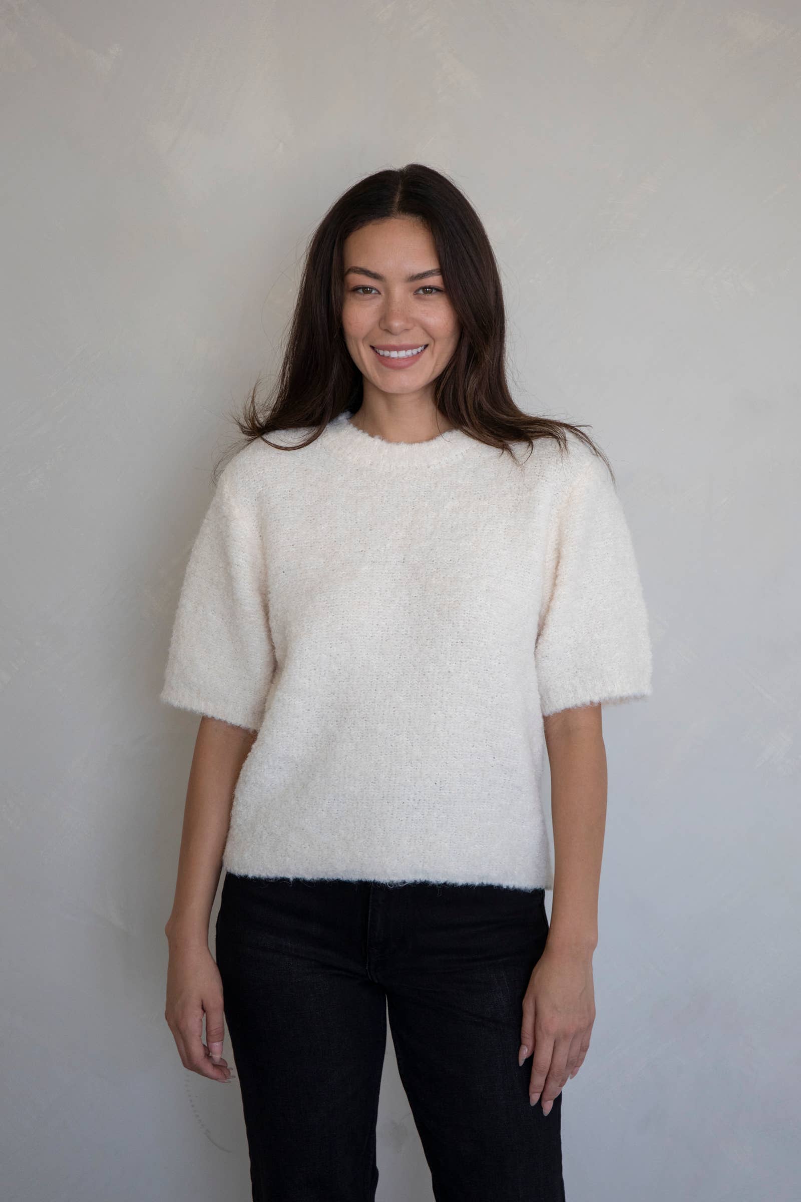 Soft boucle pullover short sleeve sweater top. Perfect for fall!