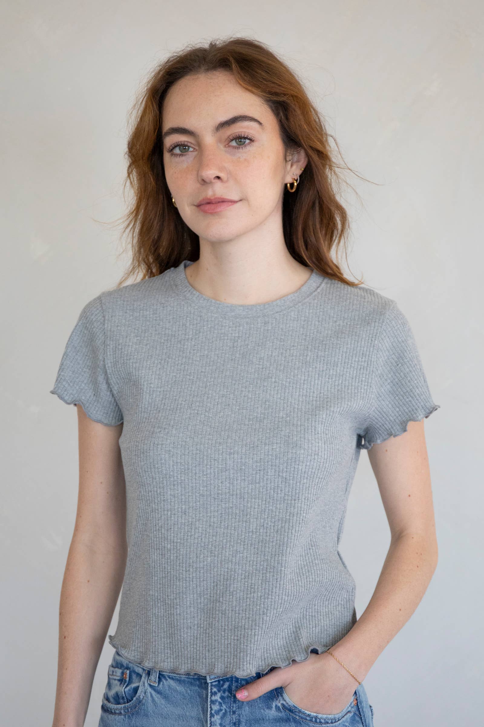 The Hailie Top from Things Between is a delightful addition to your casual wear. This soft, ribbed short sleeve shirt features a lettuce hem, adding a touch of femininity to your look. Made from a comfortable blend of 95% cotton and 5% spandex, this top provides a fit that doesn't compromise on style. Designed with everyday ease in mind, this top encapsulates the brand's ethos of finding joy in the little moments. It's the perfect blend of comfort and cool, just like all Things Between.